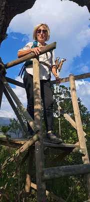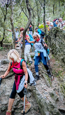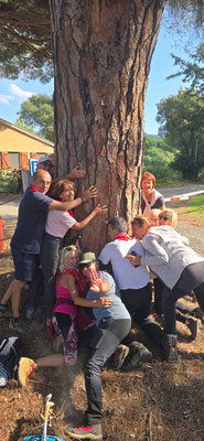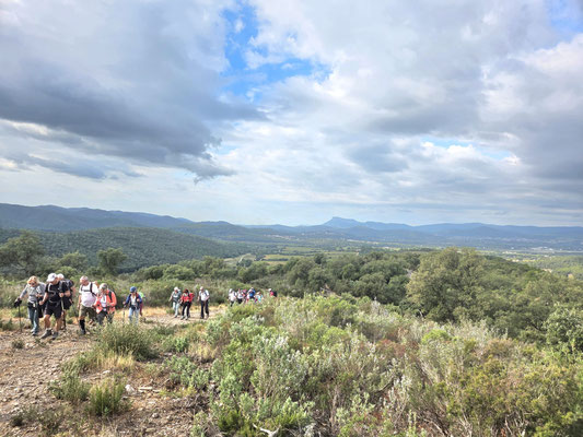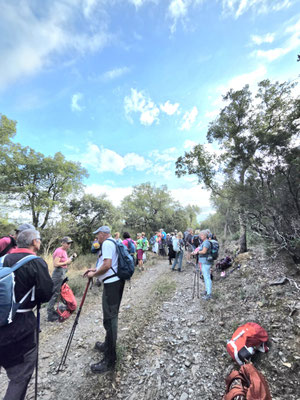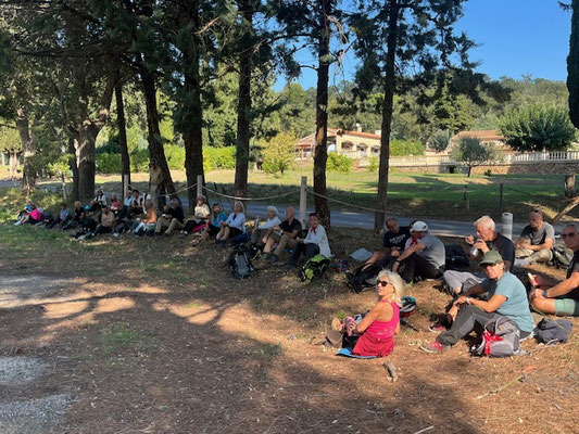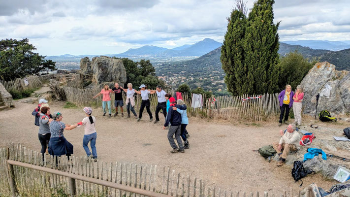 Une randonnée au départ anodine : le sommet de la croix du Fenouillet n'est seulement qu' à 291 m .Cependant ,son accès nous a demandé plus d'efforts que prévu ,mais n'a pas du tout perturbé les nouveaux rouges . Un parcours compliqué par le nombre de sentiers possibles nous a conduit au château d'Hyères où nous avons mangé puis dansé comme d'habitude . Le retour, toujours complexe, a exigé quelques efforts surtout en montée pour retrouver nos voitures.