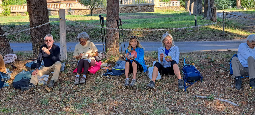 11 randonneuses et randonneurs se sont retrouvés à la chartreuse de la Verne. Après un passage devant le magnifique Monastère, nous avons traversé une châtaigneraie , puis un très beau panorama s'offrait à nous, le barrage de la Verne et la baie de St Tropez.