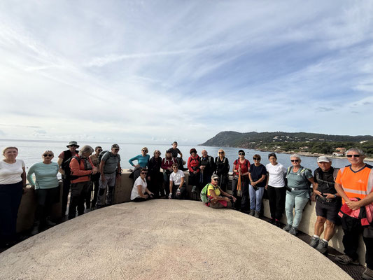 " Nous étions 23 randonneurs à nous élancer aujourd'hui sur le circuit de la batterie de Peyras à l'ouest de La Seyne sur une distance de 12 km pour 340m de dénivelé. Après un départ sur le sentier du littoral où nous avons pu découvrir les plages de Mar Vivo et Fabrégas, nous sommes montés près de la batterie de Peyras encore très bien gardée.