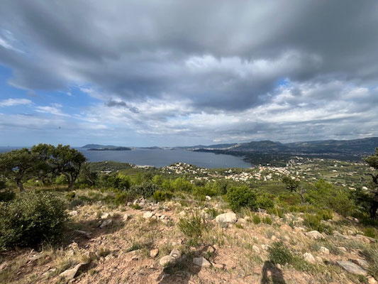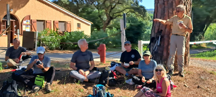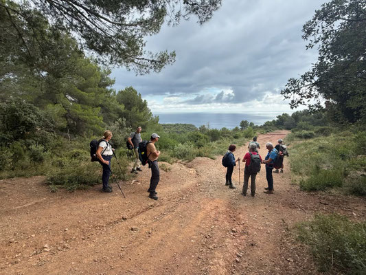 Après une bonne grimpette vers les crêtes de la Bouissède, nous avons pu admirer le beau panorama du littoral de l'île du Levant jusqu'à la presqu'île de Giens. Après une descente caillouteuse, nous avons pu faire notre pause déjeuner au Domaine des Janets avec l'accord bienveillant du propriétaire. La remontée vers le col de Gratteloup l'après-midi fut assez rude à cause de la chaleur et du dénivelé important. Au final, une belle randonnée qui nous a fait découvrir les environs du col de Gatteloup, lieu de passage fréquenté entre l'Est et l'Ouest du département du Var."