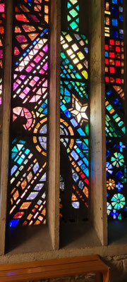Après le repas nous avons pu admirer les superbes vitraux de notre Dame .